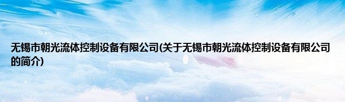本文关于无锡市朝光流体控制设备有限公司的简介就讲解完毕,希望对大家有所帮助。