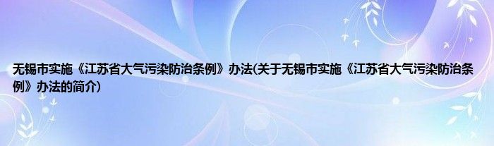 大家好,无锡市实施《江苏省大气污染防治条例》办法,关于无锡市实施《江苏省大气污染防治条例》办法的简介很多人还不知道,现在让我们一起来看看吧!