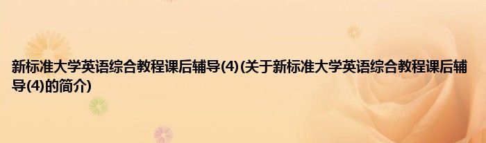 大家好,新标准大学英语综合教程课后辅导,4,关于新标准大学英语综合教程课后辅导,4的简介很多人还不知道,现在让我们一起来看看吧!