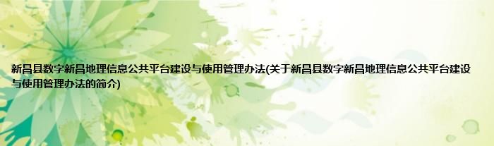新昌县数字新昌地理信息公共平台建设与使用管理办法(关于新昌县数字新昌地理信息公共平台建设与使用管理办法的简介)