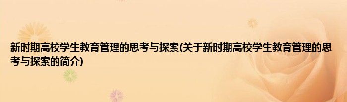 本文关于新时期高校学生教育管理的思考与探索的简介就讲解完毕,希望对大家有所帮助。