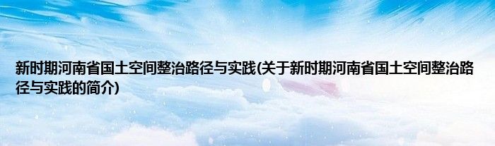 本文关于新时期河南省国土空间整治路径与实践的简介就讲解完毕,希望对大家有所帮助。