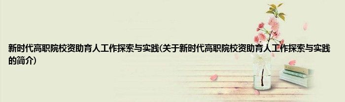 大家好,新时代高职院校资助育人工作探索与实践,关于新时代高职院校资助育人工作探索与实践的简介很多人还不知道,现在让我们一起来看看吧!