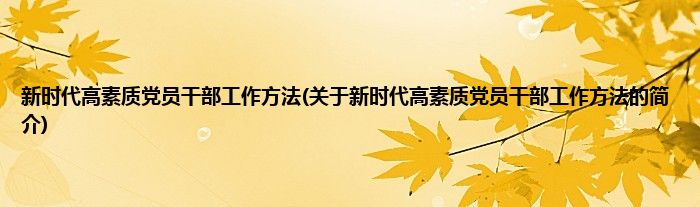 本文关于新时代高素质党员干部工作方法的简介就讲解完毕,希望对大家有所帮助。