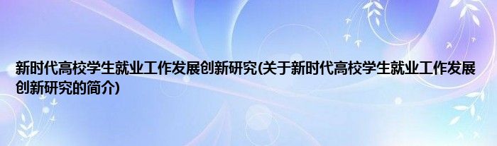 本文关于新时代高校学生就业工作发展创新研究的简介就讲解完毕,希望对大家有所帮助。