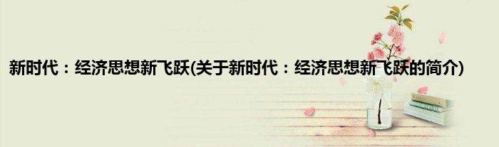 本文关于新时代:经济思想新飞跃的简介就讲解完毕,希望对大家有所帮助。
