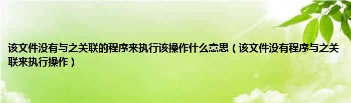 大家好,精选小编来为大家解答以上问题。该文件没有与之关联的程序来执行该操作什么意思,该文件没有程序与之关联来执行操作很多人还不知道,现在让我们一起来看看吧!