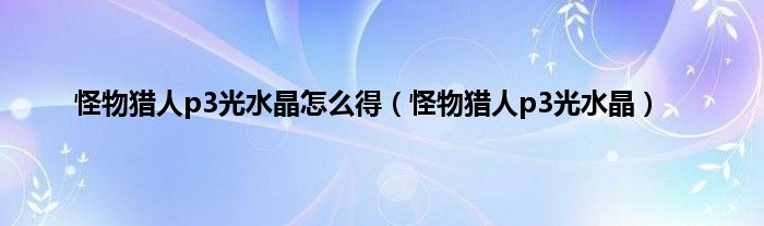 大家好,精选小编来为大家解答以上问题。怪物猎人p3光水晶怎么得,怪物猎人p3光水晶很多人还不知道,现在让我们一起来看看吧!