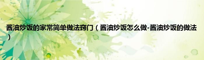 大家好,小科来为大家解答以上问题。酱油炒饭的家常简单做法窍门,酱油炒饭怎么做-酱油炒饭的做法很多人还不知道,现在让我们一起来看看吧!