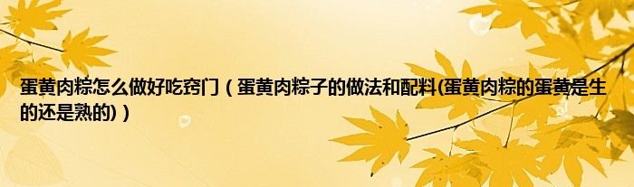 大家好,小科来为大家解答以上问题。蛋黄肉粽怎么做好吃窍门,蛋黄肉粽子的做法和配料(蛋黄肉粽的蛋黄是生的还是熟的)很多人还不知道,现在让我们一起来看看吧!