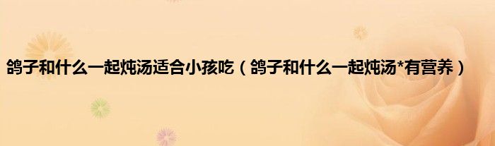 大家好,小科来为大家解答以上问题。鸽子和什么一起炖汤适合小孩吃,鸽子和什么一起炖汤*有营养很多人还不知道,现在让我们一起来看看吧!