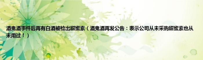 大家好,小科来为大家解答以上问题。酒鬼酒事件后再有白酒被检出甜蜜素,酒鬼酒再发公告:表示公司从未采购甜蜜素也从未用过!很多人还不知道,现在让我们一起来看看吧!