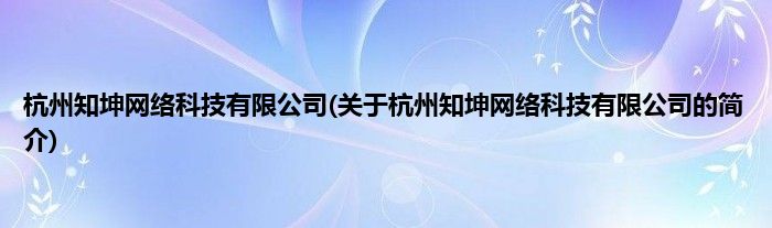 本文关于杭州知坤网络科技有限公司的简介就讲解完毕,希望对大家有所帮助。