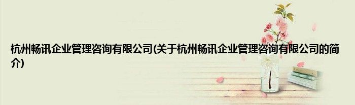 本文关于杭州畅讯企业管理咨询有限公司的简介就讲解完毕,希望对大家有所帮助。