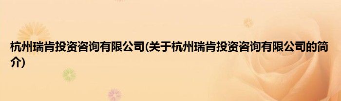 本文关于杭州瑞肯投资咨询有限公司的简介就讲解完毕,希望对大家有所帮助。