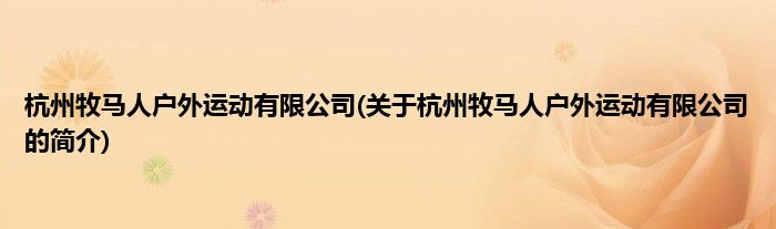 本文关于杭州牧马人户外运动有限公司的简介就讲解完毕,希望对大家有所帮助。