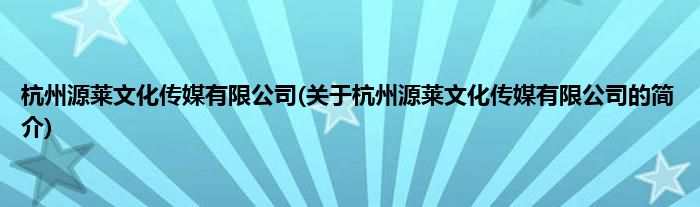 本文关于杭州源莱文化传媒有限公司的简介就讲解完毕,希望对大家有所帮助。