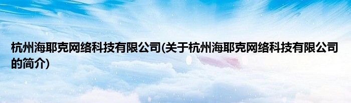 杭州海耶克网络科技有限公司(关于杭州海耶克网络科技有限公司的简介)