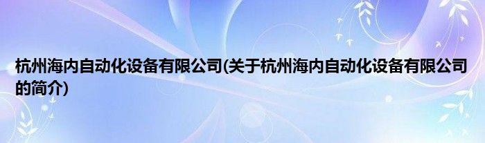 本文关于杭州海内自动化设备有限公司的简介就讲解完毕,希望对大家有所帮助。