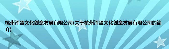 本文关于杭州浑蛋文化创意发展有限公司的简介就讲解完毕,希望对大家有所帮助。