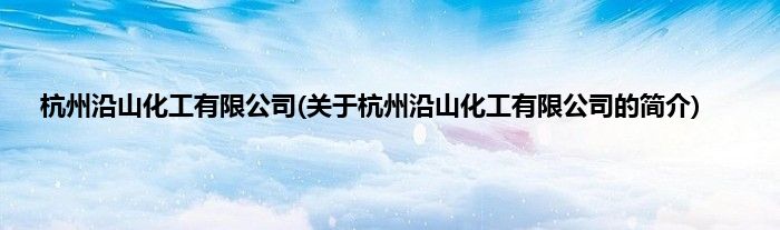 本文关于杭州沿山化工有限公司的简介就讲解完毕,希望对大家有所帮助。