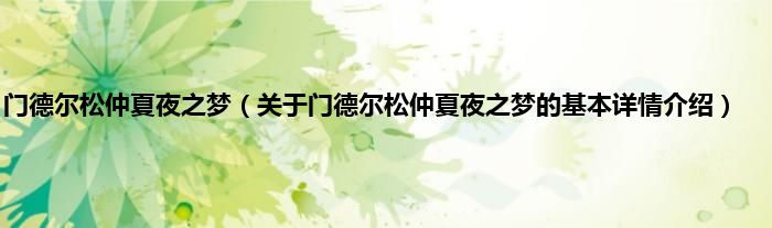 本文关于门德尔松仲夏夜之梦的基本详情介绍就讲解完毕,希望对大家有所帮助。