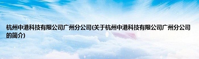 杭州中港科技有限公司广州分公司(关于杭州中港科技有限公司广州分公司的简介)