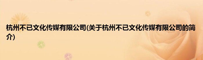 杭州不已文化传媒有限公司(关于杭州不已文化传媒有限公司的简介)