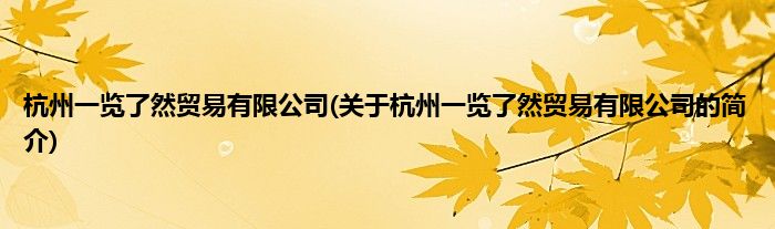 本文关于杭州一览了然贸易有限公司的简介就讲解完毕,希望对大家有所帮助。