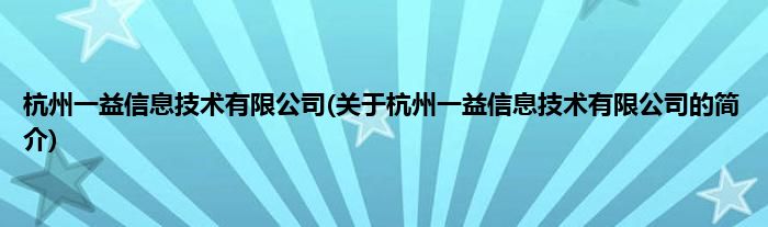 本文关于杭州一益信息技术有限公司的简介就讲解完毕,希望对大家有所帮助。