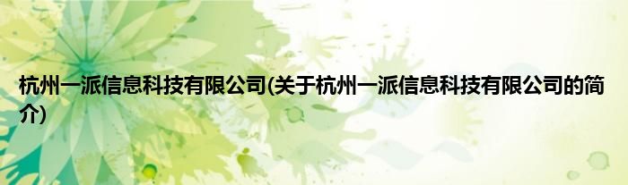 本文关于杭州一派信息科技有限公司的简介就讲解完毕,希望对大家有所帮助。