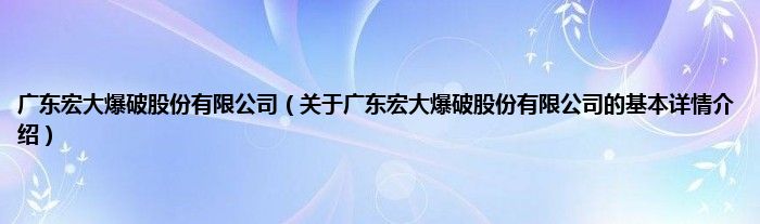 本文关于广东宏大爆破股份有限公司的基本详情介绍就讲解完毕,希望对大家有所帮助。