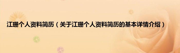 本文关于江珊个人资料简历的基本详情介绍就讲解完毕,希望对大家有所帮助。