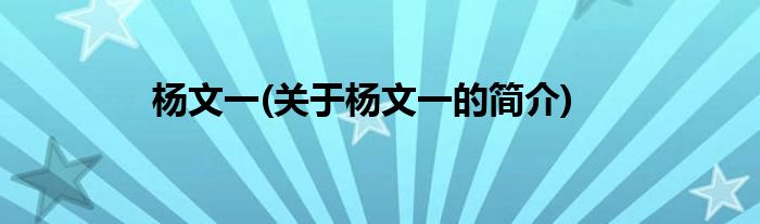 杨文一(关于杨文一的简介)