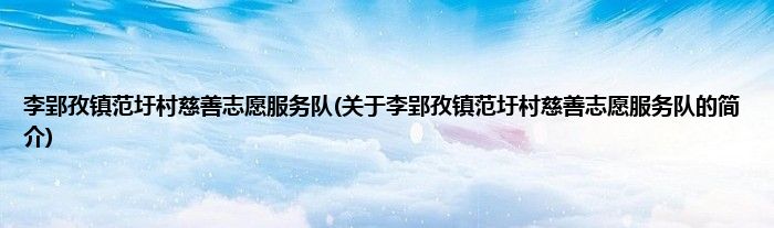 本文关于李郢孜镇范圩村慈善志愿服务队的简介就讲解完毕,希望对大家有所帮助。
