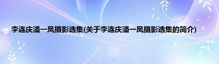 李连庆潘一凤摄影选集(关于李连庆潘一凤摄影选集的简介)