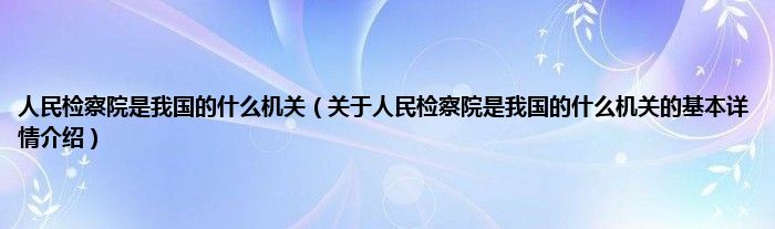本文关于人民检察院是我国的什么机关的基本详情介绍就讲解完毕,希望对大家有所帮助。