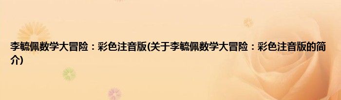 大家好,李毓佩数学大冒险:彩色注音版,关于李毓佩数学大冒险:彩色注音版的简介很多人还不知道,现在让我们一起来看看吧!