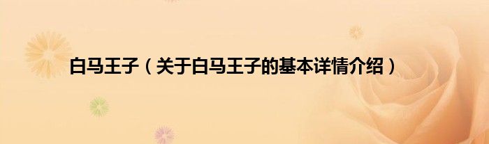 本文关于白马王子的基本详情介绍就讲解完毕,希望对大家有所帮助。
