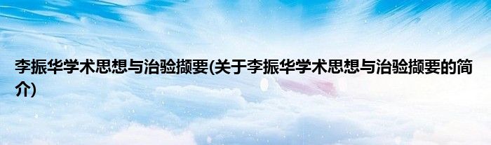 本文关于李振华学术思想与治验撷要的简介就讲解完毕,希望对大家有所帮助。