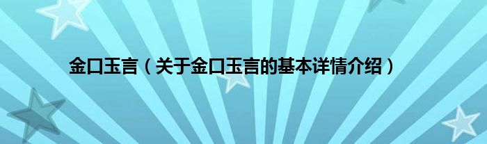 金口玉言(关于金口玉言的基本详情介绍)