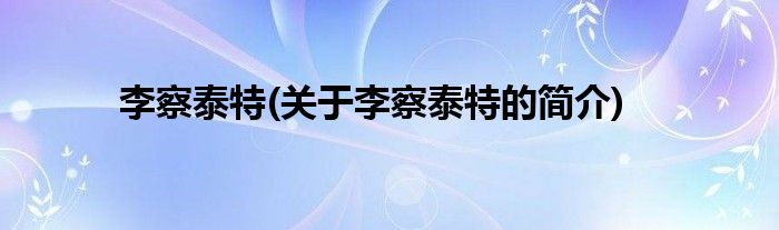 大家好,李察泰特,关于李察泰特的简介很多人还不知道,现在让我们一起来看看吧!