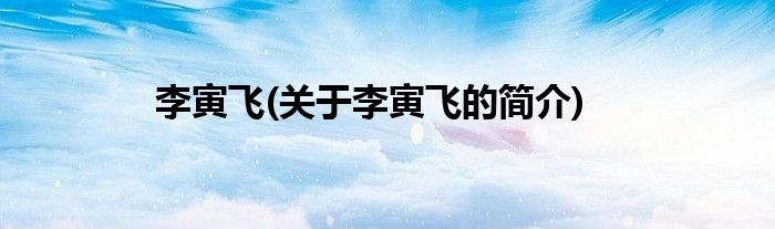 大家好,李寅飞,关于李寅飞的简介很多人还不知道,现在让我们一起来看看吧!