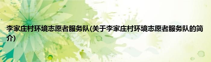 本文关于李家庄村环境志愿者服务队的简介就讲解完毕,希望对大家有所帮助。