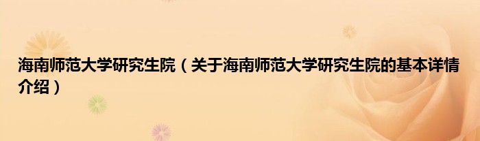 本文关于海南师范大学研究生院的基本详情介绍就讲解完毕,希望对大家有所帮助。
