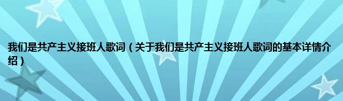 本文关于我们是共产主义接班人歌词的基本详情介绍就讲解完毕,希望对大家有所帮助。