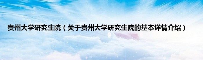 贵州大学研究生院(关于贵州大学研究生院的基本详情介绍)