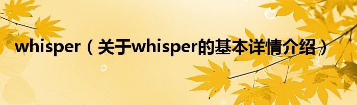 本文关于whisper的基本详情介绍就讲解完毕,希望对大家有所帮助。