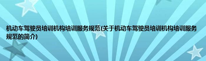 机动车驾驶员培训机构培训服务规范(关于机动车驾驶员培训机构培训服务规范的简介)
