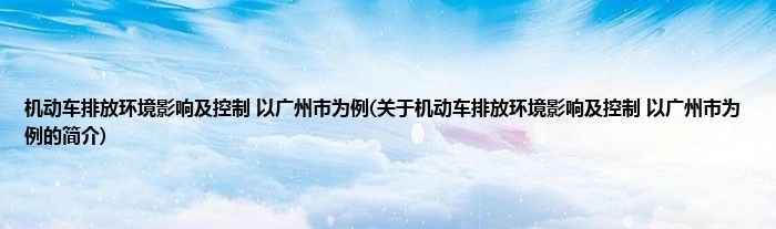 本文关于机动车排放环境影响及控制 以广州市为例的简介就讲解完毕,希望对大家有所帮助。